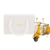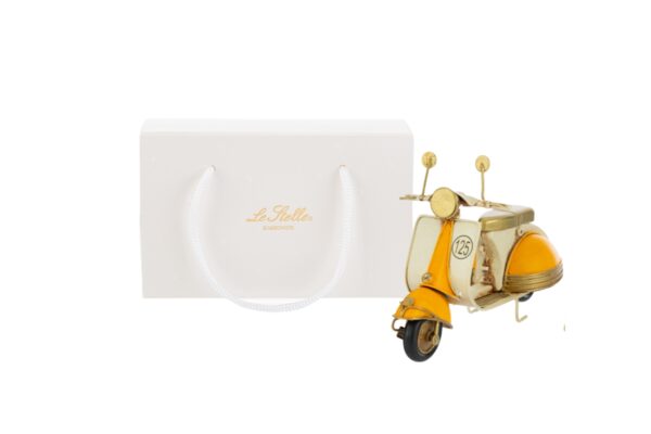 Questa moto in metallo, disponibile in 4 colori assortiti, misura 17x7xh.11 cm . Ideale come bomboniera per compleanno o prima comunione! Inclusa shopper elegante per un tocco finale raffinato.