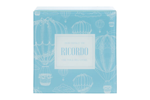 SCATOLA VETRO CELESTE 12x12xh.7CM C/SHOPPER 156643