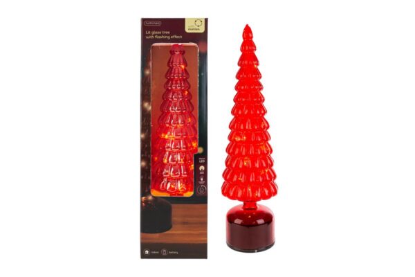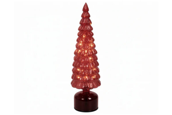 ALBERO ROTANTE NATALIZIO VETRO CON LUCI COL.ROSSO 11xh.39CM