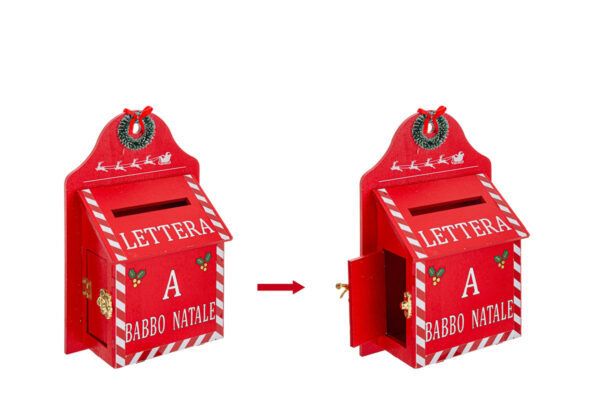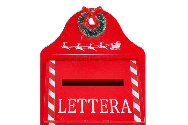 Appendino in legno con portalettere, dimensioni 14×6,5×h.22 cm, ideale come bomboniera moderna per il periodo natalizio grazie al suo design raffinato ed elegante.