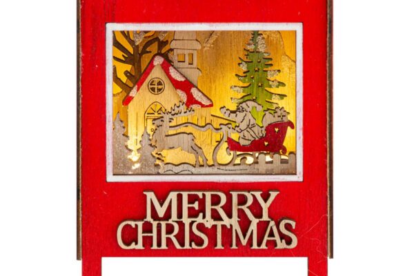 Paesaggio in legno con luci LED, ideale come bomboniera natalizia raffinata e moderna, valorizza ambienti con dettagli artigianali e un’atmosfera calda e accogliente.