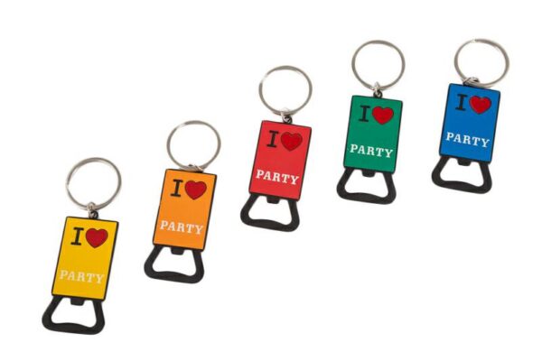 Un tocco originale per ogni festa si ritrova nel portachiavi metallo cavatappi “I Love Party”, dimensioni compatte di 7 x 3,5 centimetri. Realizzato interamente in metallo resistente, è la soluzione ideale come bomboniera da compleanno pratico e dal design accattivante. Perfetto per valorizzare eventi speciali con un ricordo utile e curato nei dettagli.