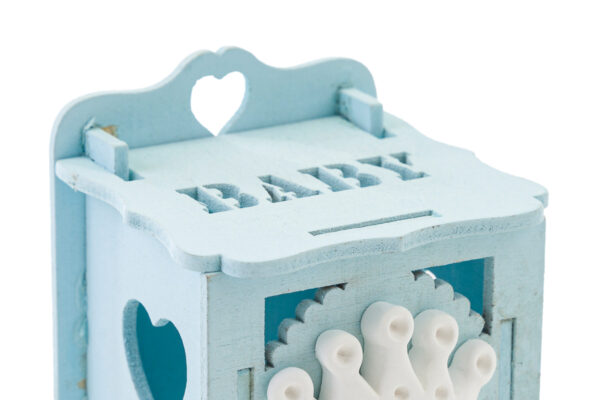 Realizzata in legno e dipinta di un delicato celeste, questa scatola dal design raffinato è perfetta per custodire piccoli ricordi. Ideale come bomboniera per celebrare una nuova nascita o un battesimo, si distingue per le sue dimensioni compatte di 5,5×5,5xh7 cm e il tocco sofisticato che porta con sé.