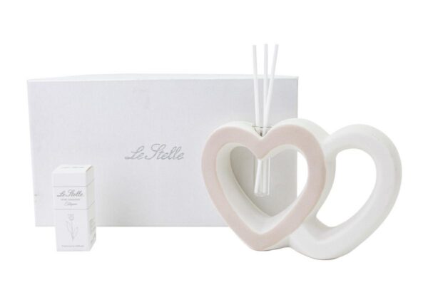 Un raffinato profumatore in porcellana a forma di cuore, dimensioni 16x5xh.11,5 cm, completo di astuccio elegante. Ideale come bomboniera per matrimoni, combina uno stile senza tempo con un tocco delicato e romantico. Perfetto per valorizzare ogni ambiente con la sua presenza discreta e armoniosa.
