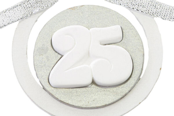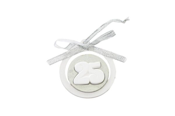 Dettagli raffinati e una finitura in resina color argento donano un tocco di esclusività all’APPENDINO LEGNO GESSETTO 25ESIMOARGENTO dal diametro di 6 cm. Perfetto come bomboniera per compleanno, arricchisce qualsiasi ambiente con stile e praticità. Una scelta distintiva che valorizza il momento speciale.