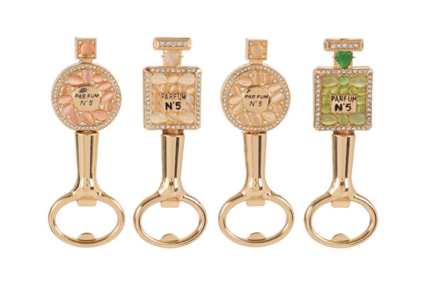 L’APRIBOTTIGLIE PARFUM METALLO si distingue per il design elegante che richiama le classiche bottiglie di profumo, offrendo un tocco originale e moderno alla tavola. Realizzato in metallo, questo apribottiglie è robusto e pratico per l’uso quotidiano.