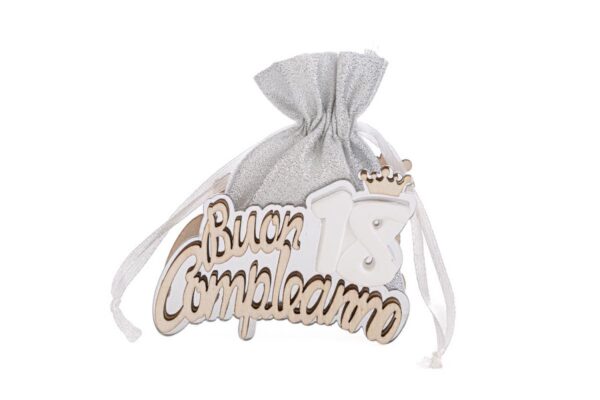 Un dettaglio di stile che si fa notare, il PORTA SACCHETTO 18ESIMO ARGENTO impreziosisce qualsiasi celebrazione di compleanno. In vetro raffinato con finitura color argento, misura 3,5 per 8,5 centimetri e altezza 9 centimetri. Soluzione perfetta come bomboniera ricercata per un evento speciale.