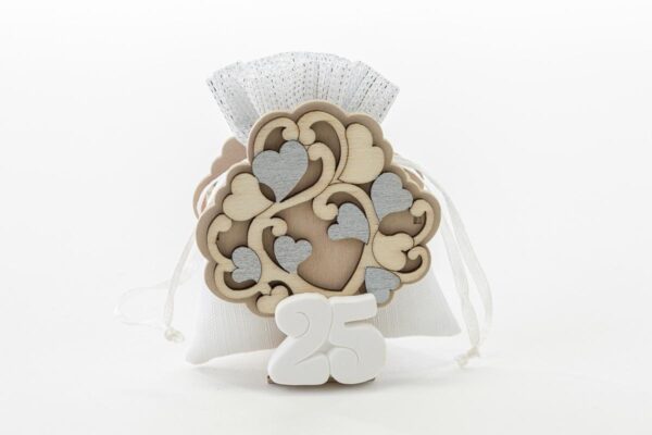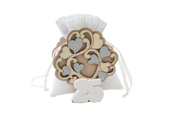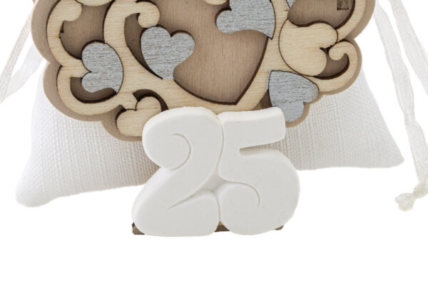 PORTA SACCHETTO ALBERO 25ESIMO ARGENTO LEGNO 6,5×3,5xh.8 CM