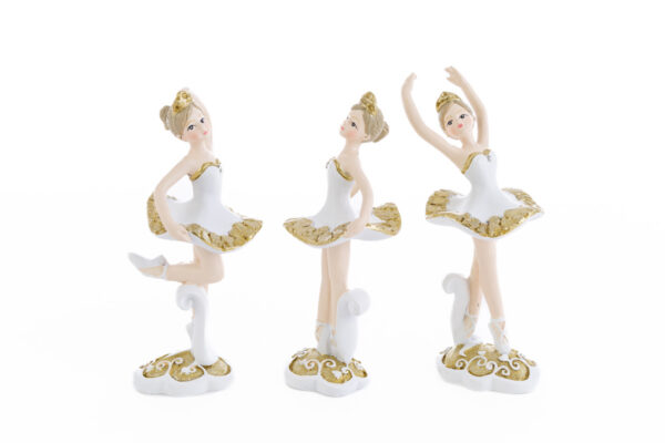 BALLERINA RESINA BIANCO ORO 3 ASS.5x5xh.12,5 CM
