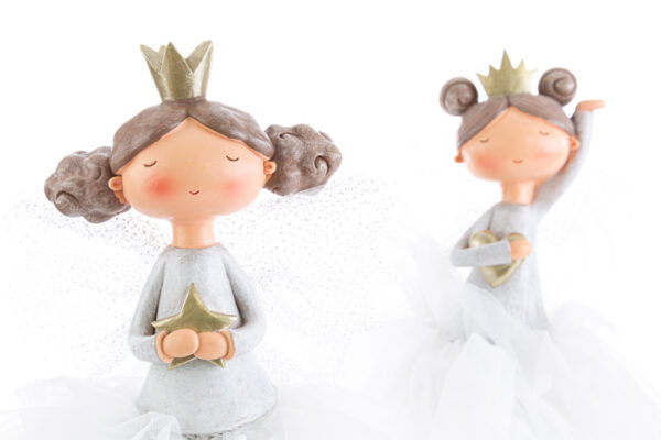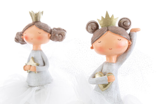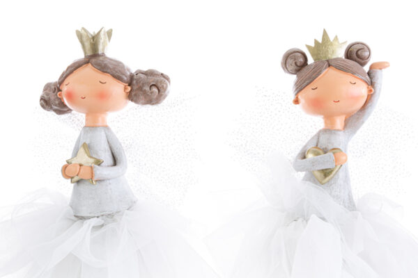 Delicate atmosfere di festa trovano un perfetto equilibrio in questa FATINA RESINA ORGANZA, proposta in due assortimenti e realizzata interamente in resina. Un’idea raffinata per bomboniere che si distinguono durante una comunione. Dimensioni generose che valorizzano ogni allestimento con uno stile sobrio e moderno.