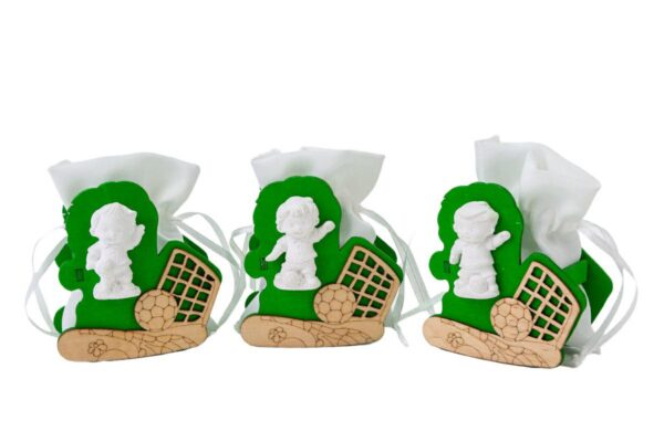 Dettagli raffinati e stile contemporaneo si fondono in questi sacchetti in legno, proposti nelle tre varianti con calciatore. La dimensione compatta di 7,5x5xh.8 cm li rende pratici da posizionare ovunque. Soluzione ideale come bomboniere per una comunione, valorizza ogni occasione con semplicità naturale.