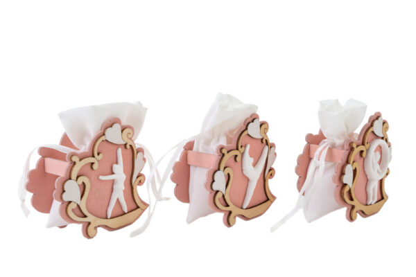 Accenti di fascino naturale emergono nei sacchetti in legno Danza, proposti in tre varianti assortite dalla forma compatta e sobria. Il materiale robusto valorizza lo stile raffinato di queste bomboniere adatte a una comunione, perfette per un gesto di ringraziamento che lascia il segno.