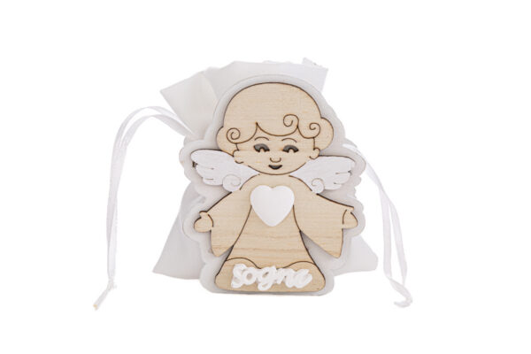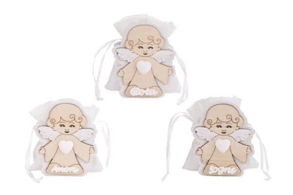 Dettagli raffinati e forme delicate caratterizzano il PORTA SACCHETTO ANGELO 3 ASS.4,5x8xh.10 CM, realizzato in legno di qualità. Questi portaconfetti sono perfetti come bomboniere per una comunione, aggiungendo un tocco accogliente e ricercato all’evento. Praticità e stile si incontrano in ogni dettaglio.