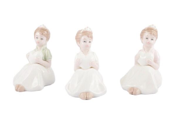 Cura nei dettagli e uno stile raffinato definiscono la PRINCIPESSA SEDUTA PORCELLANA 3 ASS. 6,5×5,5xh.9 CM. Realizzata in porcellana di alta qualità, questa creazione si distingue come bomboniera perfetta per una comunione grazie al suo design sofisticato e delicato. Ideale per chi desidera donare un ricordo unico e prezioso che racchiude tradizione ed esclusività.