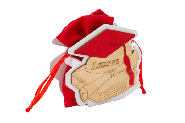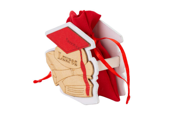 Realizzato in legno di qualità, questo sacchetto unisce stile e funzionalità per celebrare un traguardo importante. Pensato come bomboniera raffinata per la laurea, offre un design compatto dalle dimensioni di 8×3,5xh.8,5 cm. Un dettaglio unico che valorizza ogni occasione speciale con charme e semplicità.