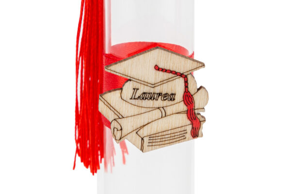 Un’idea unica per celebrare un traguardo speciale. La provetta in vetro, dimensioni 2,5 x h 12,5 cm, è perfetta come bomboniera da laurea. Realizzata in materiale trasparente di qualità, si distingue per il design raffinato e versatile che aggiunge un tocco moderno a ogni occasione.