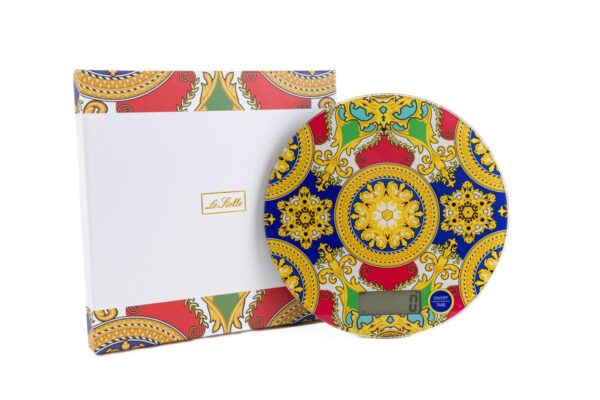 Eleganza e funzionalità si incontrano nella bilancia Royal Carousel Max, ideale per un utilizzo pratico e raffinato. Realizzata in vetro resistente con diametro di 19 cm, offre una capacità fino a 5 kg. Perfetta anche come bomboniera elegante per matrimoni, grazie al suo design esclusivo e all’astuccio incluso.