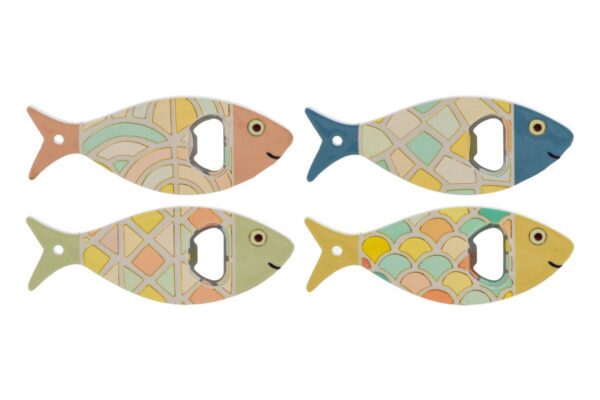 La calamita cavatappi pesciolino in ceramica offre una soluzione originale per aprire bottiglie, grazie alla pratica combinazione di apribottiglie e magnete. Disponibile in quattro varianti assortite, presenta colori pastello e decorazioni moderne che richiamano la forma di un pesce stilizzato. Queste bomboniere sono ideali per un matrimonio, aggiungendo un tocco creativo alla tavola e restando sempre a portata di mano grazie alla calamita sul retro. Ogni pezzo misura circa 14,5 x 5,5 cm ed è realizzato in ceramica resistente, pensata per valorizzare sia l’estetica sia la funzionalità all’interno della casa.