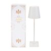 Lampada da tavolo bianca dal design moderno, realizzata in vetro, con tecnologia LED e controllo touch integrato. Dotata di alimentazione USB, offre praticità e facilità d’uso in ogni ambiente. Le sue dimensioni compatte (10 cm di diametro e 36 cm di altezza) la rendono perfetta come bomboniera per matrimonio. La confezione elegante e la luce delicata valorizzano ogni occasione speciale, conferendo un tocco di stile e funzionalità a tavoli e ambienti di ricevimento.