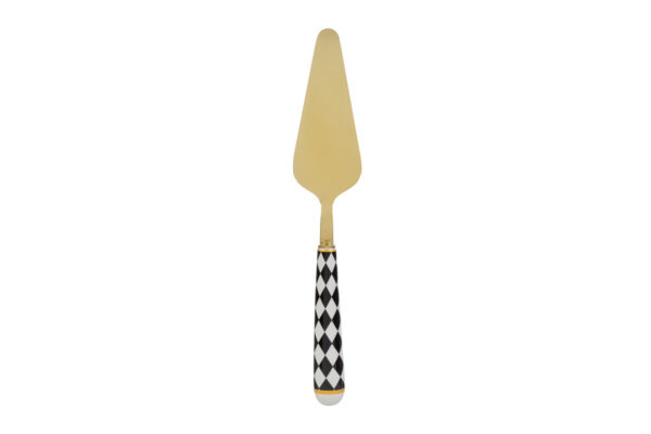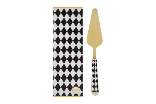 La paletta torta con decorazione a scacchi da 25 cm è realizzata in metallo resistente e presenta una finitura dorata elegante. Il manico decorato in stile scacchi conferisce un tocco moderno e ricercato. Grazie all’astuccio abbinato, è perfetta come bomboniera per matrimonio, unendo utilità e raffinatezza. Ideale per tagliare e servire dolci durante le cerimonie, si distingue per la cura dei dettagli e per il design di forte impatto visivo.