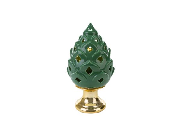 Perfetta per celebrare il giorno più speciale, questa pigna in porcellana spicca per la sua raffinata tonalità verde e un design che richiama tradizione e stile contemporaneo. Con dimensioni di 14,5x14xh.25 cm, è ideale come bomboniera unica e memorabile per matrimoni indimenticabili.