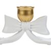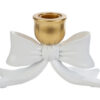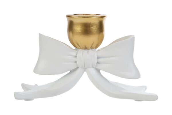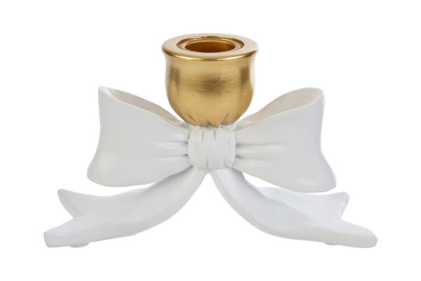 Questo portacandele in resina presenta una raffinata forma a fiocco con finitura oro nella parte superiore, dettagliando un design elegante e moderno. Le dimensioni compatte lo rendono ideale come bomboniera per matrimonio, valorizzando ogni tavola con discrezione e stile. La struttura stabile consente di esporre candele sottili o tea light per decorazioni di ambienti domestici e cerimonie. Il materiale in resina garantisce resistenza e durata. Fornito con shopper, è subito pronto da donare o esporre.