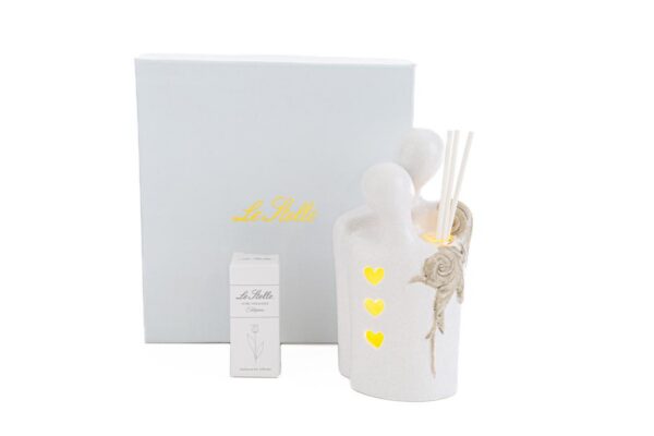 Un tocco elegante per il tuo giorno speciale. Il profumatore Coppia Sposi LED, realizzato in finissima porcellana, unisce raffinatezza e funzionalità. Con dimensioni compatte di 7,5×6,5xh14,5 cm e incluso in un pratico astuccio, è perfetto come bomboniera esclusiva per matrimoni. Un ricordo unico che illumina con stile ogni ambiente.