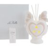 Un elegante profumatore in porcellana a forma di cuore decorato con una delicata farfalla e arricchito da un luminoso LED integrato. Le sue dimensioni compatte, 11,5×6,5xh.14,5 cm, lo rendono ideale come bomboniera perfetta per celebrare un matrimonio con stile ed eleganza. Completo di astuccio raffinato.