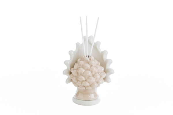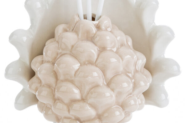 Eleganza e raffinatezza si incontrano nel profumatore a forma di pigna in porcellana beige. Con dimensioni 12,5x9xh.15 cm, è perfetto come bomboniera per matrimoni grazie al suo design intramontabile e alla finitura fine. Un’idea che unisce stile e praticità per celebrare momenti speciali con gusto unico.