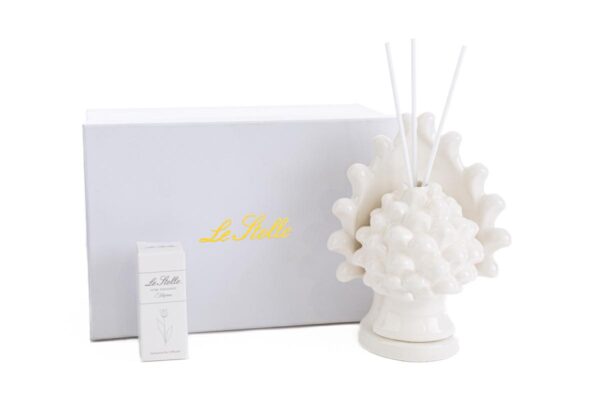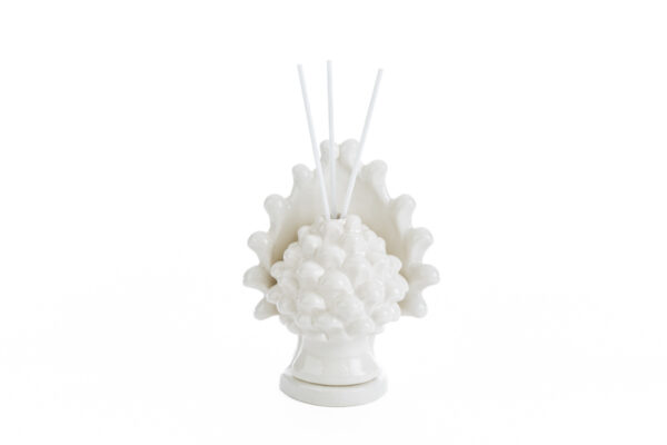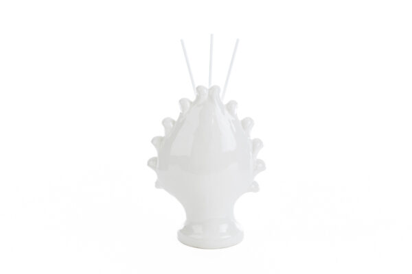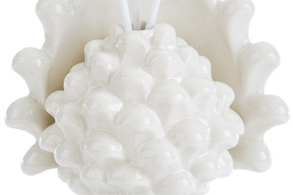 La raffinatezza prende forma con il profumatore in porcellana bianca, impreziosito da un design elegante a pigna. Con dimensioni di 12,5x9xh.15 cm e completo di astuccio, è perfetto come bomboniera per matrimoni. Un accessorio sofisticato che dona stile e armonia ad ogni ambiente.