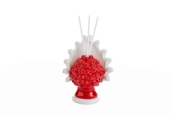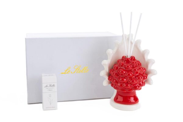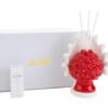 Un elegante profumatore in porcellana rossa, arricchito da una delicata forma a pigna che simboleggia prosperità e armonia. Con dimensioni compatte di 12,5x9xh.15 cm e completo di astuccio raffinato, è la scelta ideale per bomboniere di matrimonio raffinate e senza tempo.