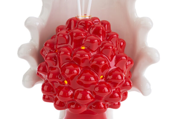 Un’elegante pigna in porcellana rossa che unisce tradizione e raffinatezza, arricchita da un suggestivo LED luminoso. Con dimensioni 15x10xh.21 cm e confezionata in astuccio, è una scelta ideale come bomboniera per matrimoni. Un tocco di classe per celebrare momenti speciali con stile unico.
