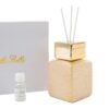 Un raffinato profumatore in porcellana dalle linee pulite, impreziosito da dettagli dorati che catturano lo sguardo. Con dimensioni compatte di 7,5 cm x h.13 cm, è ideale per arricchire con stile gli ambienti o come bomboniera perfetta per un matrimonio. Un regalo prezioso e senza tempo.