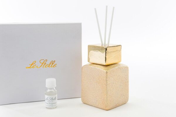 Un raffinato profumatore in porcellana dalle linee pulite, impreziosito da dettagli dorati che catturano lo sguardo. Con dimensioni compatte di 7,5 cm x h.13 cm, è ideale per arricchire con stile gli ambienti o come bomboniera perfetta per un matrimonio. Un regalo prezioso e senza tempo.
