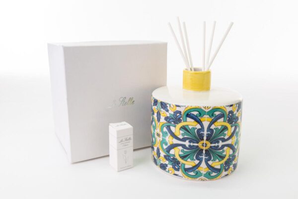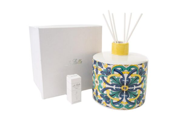 Raffinato profumatore in porcellana con un design ispirato alle tonalità rilassanti della Riviera Blu. Perfetto come bomboniera per matrimoni, unisce stile e praticità grazie alla sua diffusione delicata di fragranze. Le dimensioni compatte (d.14 x h.15 cm) lo rendono ideale per ogni ambiente, aggiungendo un tocco distintivo e armonioso.
