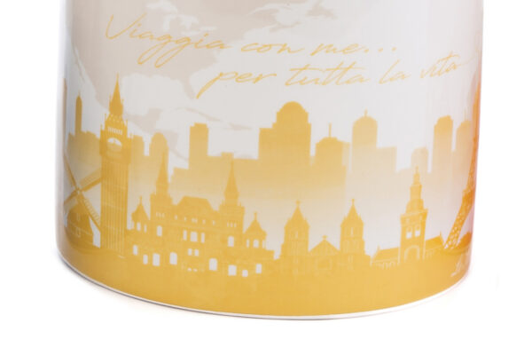 Eleganza e raffinatezza si incontrano nel profumatore in porcellana Travel of Love, progettato per donare un tocco di classe a qualsiasi ambiente. Realizzato con materiali pregiati, è il complemento ideale per essere utilizzato come bomboniera durante un matrimonio, arricchendo l’evento con stile e unicità. Perfetto nelle sue dimensioni compatte di 8,5 cm di diametro per 9 cm di altezza.