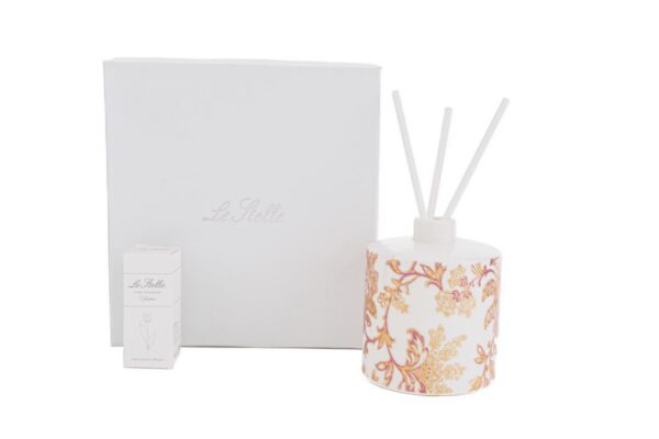 Sorprendente nella sua eleganza, il profumatore tondo Thai Flower in porcellana si distingue per il design raffinato e le dimensioni ideali di 7,5×7,5xh.9 cm. Completo di astuccio, è perfetto come delicata bomboniera per matrimoni, con un tocco prezioso che valorizza ogni occasione speciale.