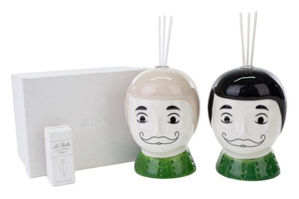 Un raffinato profumatore in porcellana, disponibile in due varianti. Con un design delicato e dimensioni compatte di 10×13 cm, è accompagnato da un elegante astuccio. Ideale come bomboniera per matrimoni, aggiunge un tocco di stile unico a ogni ambiente con la sua sobria raffinatezza.