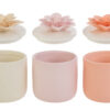 Queste bomboniere in porcellana, proposte in tre colori assortiti, sono pensate per aggiungere un tocco raffinato al matrimonio. Ogni scatola presenta una linea moderna e pulita, valorizzata dal coperchio decorato con un fiore stilizzato. Ideali per contenere confetti o piccoli omaggi, assicurano una presentazione elegante grazie all’astuccio abbinato. Le dimensioni compatte, 8,5 × 8,5 xh.11,5 cm, facilitano l’inserimento nei diversi allestimenti della cerimonia mantenendo armonia e praticità.
