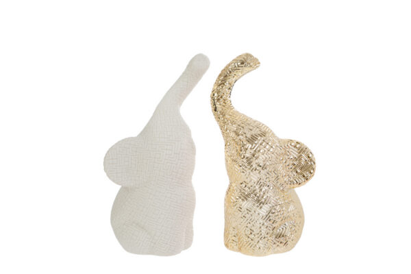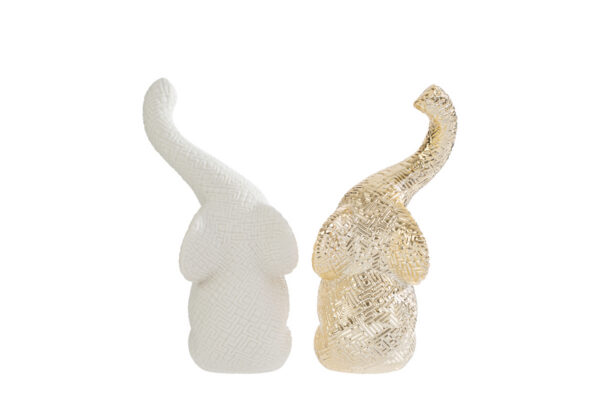SET 2 ELEFANTINI PORCELLANA 3D BIANCO/ORO 5x9xh.16CM C/ASTUCCIO