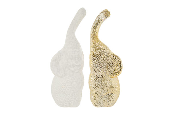 SET 2 ELEFANTINI PORCELLANA 3D BIANCO/ORO 6×9,5xh.27CM
