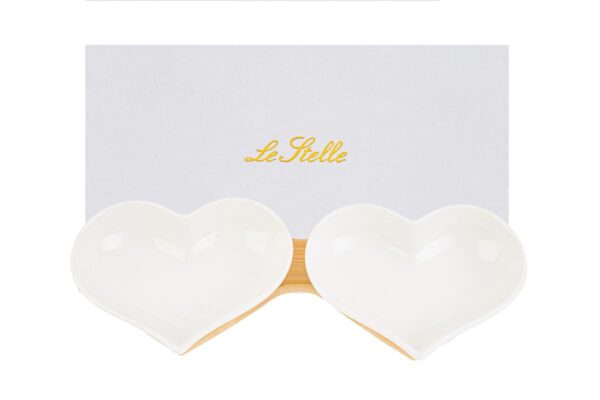 Linee eleganti e design romantico definiscono questo set di ciotole a forma di cuore in porcellana, dimensioni 25,5×10,5xh.4 cm. Perfette come bomboniere per matrimoni, coniugano stile e funzionalità. Fornite in un raffinato astuccio, aggiungono un tocco di classe a ogni occasione speciale.