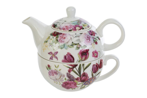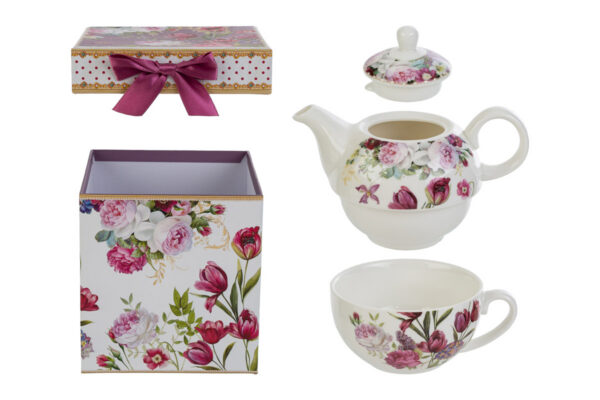 SET TEIERA BOUQUET DI CHARME PORCELLANA C/ASTUCCIO 14×14,5CM
