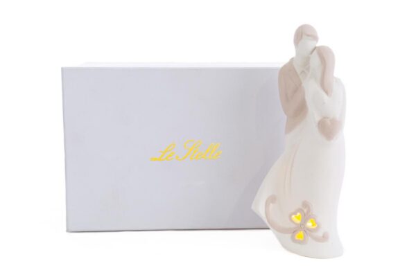 Un tocco di eleganza senza tempo per il tuo grande giorno. Gli sposini in porcellana con illuminazione LED sono una scelta raffinata e moderna, perfetta come bomboniere per un matrimonio indimenticabile. Realizzati in materiale di alta qualità, combinano bellezza e funzionalità in un design compatto e ricercato.