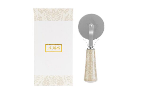 Eleganza e funzionalità si uniscono nel Taglia Pizza Florentia da 15 cm con astuccio. Realizzato in metallo, garantisce durata e precisione per un taglio impeccabile. Perfetto anche come bomboniera per matrimoni, è un regalo pratico che unisce stile e originalità.