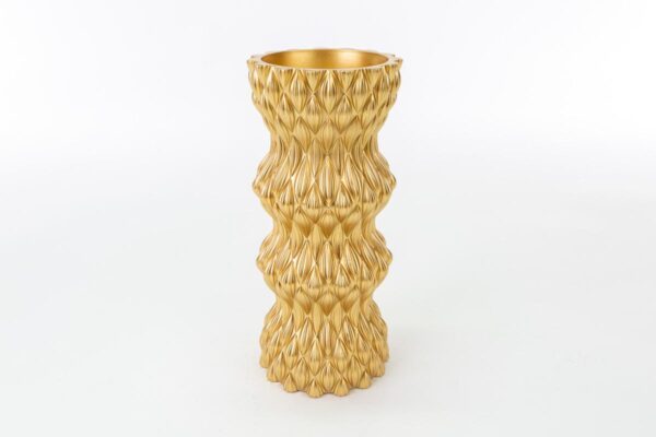 Un tocco di sofisticata raffinatezza per il tuo matrimonio: il vaso in resina color oro, 12 cm di diametro e 27 cm d’altezza, è perfetto come bomboniera esclusiva. Il design moderno si abbina a ogni stile decorativo, donando un effetto prezioso che valorizza ogni evento speciale.