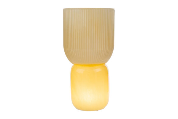 Il vaso vetro lampada beige, con diametro di 12 cm e altezza di 23 cm, è realizzato in vetro e presenta un elegante design moderno. La finitura opaca abbinata a dettagli luminosi lo rende un oggetto raffinato. Questo articolo viene proposto all’interno di una confezione regalo con dettagli dorati, ideale come bomboniera per matrimonio. Si adatta facilmente a vari ambienti grazie alle sue linee semplici e alla sua tonalità neutra. Il prodotto combina la funzione decorativa del vaso con la luce soffusa di una lampada, perfetto per creare un’atmosfera accogliente su tavoli, mensole o come centrotavola in occasioni speciali.