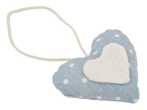 Un dolce appendino a forma di cuore, impreziosito da un raffinato motivo a pois celeste e realizzato in morbida stoffa. Perfetto come bomboniera per celebrare una nuova nascita o un battesimo, aggiunge un tocco delicato e sofisticato agli eventi più speciali. Un ricordo prezioso che coniuga stile e semplicità.