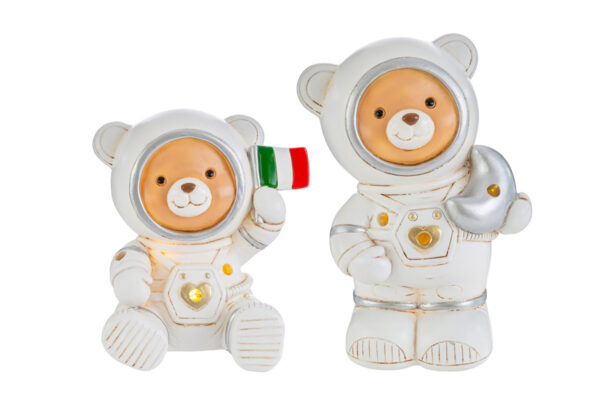 Un tocco di originalità per celebrare momenti speciali. Realizzato in resina, l’Astronauta LED unisce design moderno e atmosfera luminosa, perfetto come bomboniera per nuove nascite o battesimi. Con altezza massima di 12,5 cm, è un dettaglio prezioso che aggiunge significato a ogni ricorrenza.