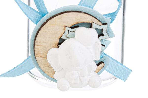 Un raffinato barattolino in vetro celeste, dal design delicato e armonioso. Perfetto per celebrare momenti speciali come una nuova nascita o un battesimo, è ideale come bomboniera che combina funzionalità ed estetica. Un elemento versatile e distintivo per donare un tocco di classe alle tue occasioni importanti.